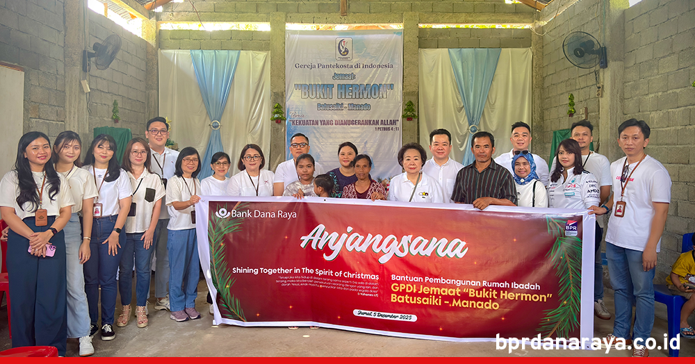 Manado, 5 Desember 2025 — Bank Dana Raya kembali menunjukkan kepedulian dan komitmennya dalam mendukung pembangunan komunitas melalui kegiatan Anjangsana di Gereja GPdI Jemaat ”Bukit Hermon” Batusaiki, Kelurahan Molas, Manado. Bank Dana Raya menyerahkan bantuan bahan bangunan yang masih dibutuhkan jemaat untuk melanjutkan proses pembangunan gereja yang telah berdiri kurang lebih tujuh tahun tersebut.